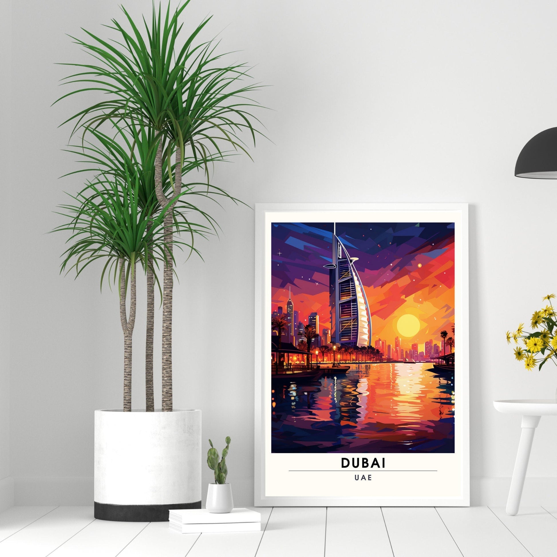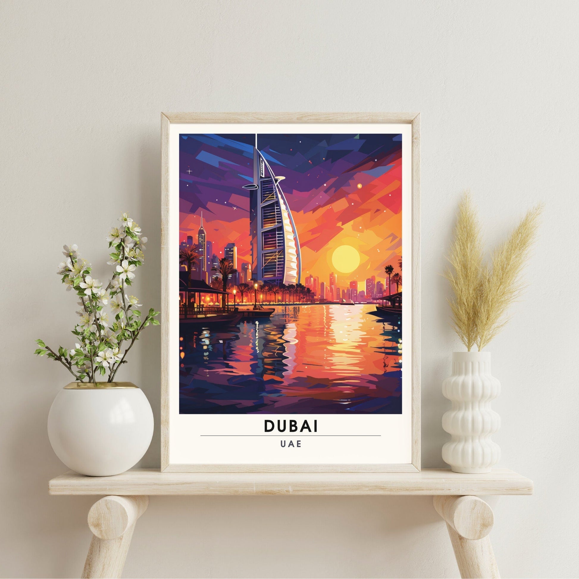 Explore the magic of Dubai at night through our collection of original artworks featuring the iconic Burj Al Arab. Immerse yourself in the captivating essence of this futuristic metropolis with our new travel print. This visual creation instantly transports you to the shimmering lights of the night, the opulence of the Burj Al Arab hotel, and the enchanting atmosphere of Dubai.